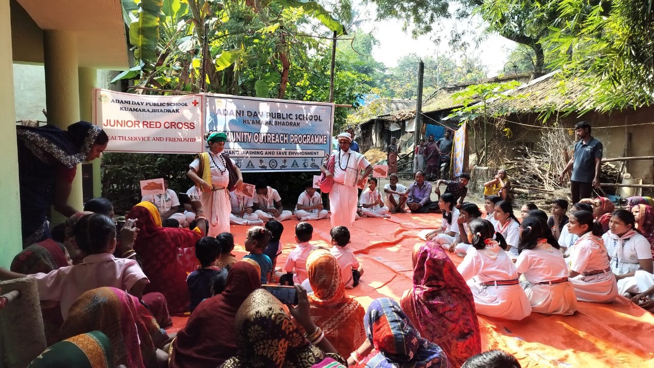 Dhamra,swa news : A public outreach programme was organized by the Junior Red Cross of Adani DAV Public School at Patnaik Sahi Anganwadi Center, Kuamara, Bhadrak. The programme was conducted by Junior Red Cross Councellor, Mr. Arun Kumar Lenka under the direct supervision of the Esteemed Principal of the School, Mrs. Krishnapriya Sarangi. Anganwadi students and villagers were practically made aware of Cleanliness Drive and Environmental Protection Drive. They practiced seven valuable steps of hand-washing and different methods of plantation of saplings through Chakulia Panda Traditional Dance and Chadheya-Chadheyani Folk Dance which were beautifully presented by the students of Red Cross Wings of the school. The Principal, Mrs Krishnapriya Sarangi, In her motivational speech, encouraged all viewers to wash hands to stay fit and healthy and plant trees to live a happy and prosperous life.