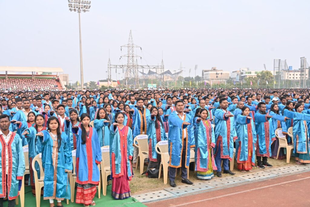Mr Jagadananda said, “Whatever I have been able to contribute is rooted in the people.” Praising KISS’s social impact, he added, “KISS has transformed the tribal communities. I commend the founder for bringing the change.” To the students, he urged, “Carry your roots with pride.”